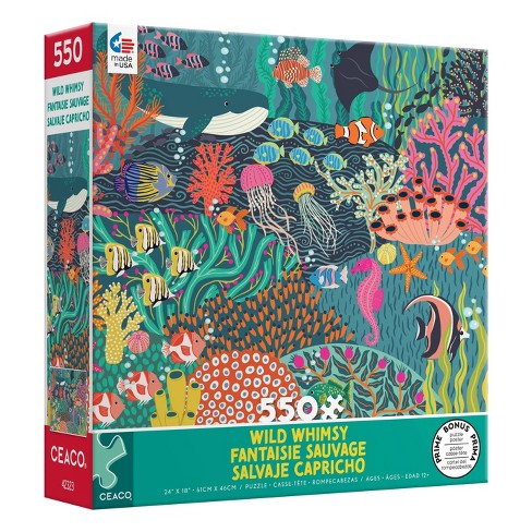 This 550 piece Wild Whimsy puzzle features a lovely and whimsical illustration of sea creatures including a whale, jellyfish, tropical fish and many others. The puzzle is set in a...