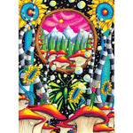 In a fantastical realm where giant, colorful mushrooms tower over fields of radiant, blooming flowers, a shimmering portal stands as the centerpiece. The air is filled with the sweet fragrance...