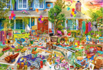 This 2000-piece jigsaw puzzle titled Yard Sale by Artist Aimee Stewart features a very busy and vibrant garage sale!