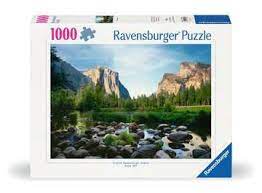 Yosemite Valley features a scene of mountains, trees and a lake with rocks
